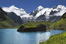 ![]() Combin de Corbassière (center) seen from Lac de Louvie | |