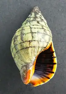 Dorsal view of a Cominella virgata shell.