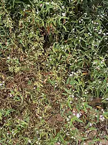 Commersonia amystia is a species of flowering plant in the family Malvaceae and endemic to eastern Australia. It is a dwarf shrub with narrow egg-shaped leaves that are densely covered with star-like hairs on the lower surface, and has flowers with five white sepals that turn pink as they age, and five smaller white petals.