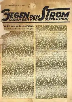 The KPO official organ (Gegen den Strom) continued to be produced after the Nazis' rise to power in 1933