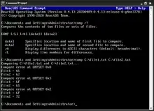 In computing, comp is a command used on DEC OS/8,[1] DOS,[2] DR FlexOS,[3] IBM OS/2,[4] Microsoft Windows[5] and related computer operating systems such as ReactOS. It is used to perform comparisons of multiple computer files to show the differences between them.[6]