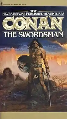 Conan the Swordsman is a collection of seven fantasy short stories and associated pieces by writers L. Sprague de Camp, Lin Carter and Björn Nyberg featuring Robert E. Howard's sword and sorcery hero Conan the Barbarian. It was first published in paperback by Bantam Books in August 1978,[1][2] and reprinted in 1981.[1] Later paperback editions were issued by Ace Books (April 1987 and March 1991). The first hardcover edition was published by Tor Books in December 2002.[2] The first British edition was issued by Sphere Books in 1978.[1] The book has also been translated into Italian[1] and French.[2] It was later gathered together with Conan the Liberator and Conan and the Spider God into the omnibus collection Sagas of Conan (Tor Books, January 2004).[2]