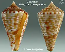 - 1 2 Bouchet, P. (2015). Conasprella spirofilis (Habe & Kosuge, 1970). Accessed through: World Register of Marine Species at http://www.marinespecies.org/aphia.php?p=taxdetails&id=835349 on 2015-03-16