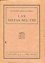 Today Castella is ignored in general works on history of Spanish literature.[87] She is absent also in detailed accounts either dealing with 20th-century Spanish literature,[88] or Spanish women writers,[89] or Spanish novel,[90] or Spanish 20th-century novel,[91] or Spanish fascist literature,[92] or post-war Spanish narrative prose.[93] She might be marginally mentioned in treaties on culture during the civil war[94] or on “novela popular”, but still in the secondary rubric of “other authors”.[95] Few works which pay slightly more attention present her as one of many authors who used to write banal, second-rate prose deprived of major if any artistic value; they reportedly combined action and romance and are usually labeled “novela rosa”, sort of “kitchen literature” for intellectually immature audience. This production is relegated to propaganda forming part of the Francoist grip on culture in Spain of the 1940s,[96] “intachables desde el punto de vista de la moralidad de sus escritos” and “guardiana de los valores tradicionales consagrados por la naciente España franquista”,[97] at times referred to a “subliteratura” or “infraliteratura”.[98] If noted without stigmatizing as a reactionary Franquist propagandist, Castella is mentioned as related to literature featuring feminine personalities,[99] old Granada customs,[100] forgotten vocabulary,[101] Andalusian Gypsies,[102] or Carlist narrative.[103] She is marginally mentioned in present-day Carlist cyberspace.[104]