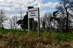 The Congregational church was established here in 1855, and a small frame church was constructed three years later. It remained in operation until about 1906. The church building remained in place until at least the 1920s when it was moved to Rickardsville and used for a variety of functions until it was taken down in 1980. The cemetery was listed on the National Register of Historic Places in 2017.[1]