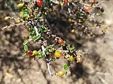 - ↑ "Granjero rojo (Condalia velutina)" (in Spanish). EncicloVida. Retrieved 2022-06-15.