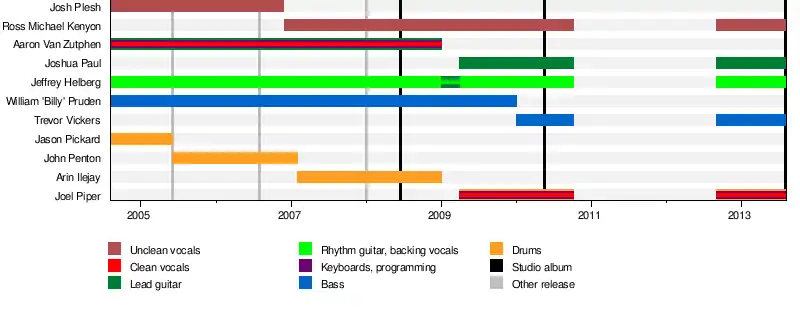| Past members | Aaron Richard Van Zutphen Arin Ilejay Jason Pickard Jeffrey Helberg John Penton Joshua Paul Josh Plesh Joel Piper Ross Michael Kenyon Trevor Vickers William ‘Billy’ Pruden |