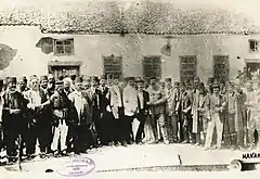 Most of the delegates were Muslim Albanians, others included 95 Christians.[4] Some of the Young Turks present were officers dressed in civilian clothes.[4] The Young Turks wanted, through Vehbi Dibra to force the attendees to agree with the program.[4] Among other issues the Young Turks had prepared for discussion was the geopolitical question of Crete and military service for all subjects of the Ottoman Empire while they tried to neglect those related to Albanianism.[2][4] Strong opposition toward the Young Turks came from nationally minded Albanians including Abdul Ypi who delivered a fiery speech.[4] The differences produced clashes and the meeting was temporarily suspended.[4] Later a committee was formed to decide on the program.[4] The main goal of the Young Turks was to show the European and Ottoman public that Albanians were ready to protect the Constitution and did not have separatist aims.[4] Additionally the Young Turks wanted to force acceptance of the Arabic alphabet by the Albanians.[4] Support for the positions of the Young Turks came from many delegates.[4] The Albanian element however took total control of the proceedings and rejected the request of the Young Turks to declare themselves Ottomans, promise to fight for the empire and write with Arabic letters.[6] The final compromise decision of the congress was that the Albanian language should taught freely, the Albanians could write with any alphabet they wanted and elementary, secondary and commercial schools and lyćees should be opened in every part of Albania.[4][6] Additional demands adopted were for justice in the courts, tax reforms, infrastructure, permission to keep their weapons, the delineations of frontiers and military service only within Albanian territory. In the end of proceedings, it was decided that other similar congresses would be held each coming year in other settlements across the European part of the Empire.[5]