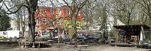 In the 2010s, the center became known as an Anti-German project. Palestinian keffiyehs would be confiscated and returned at the end of the night with a note.[1] The project celebrated 20 years of existence in 2011.[1] In 2016 there were controversies when a self-confessed "Islam hater" spoke at the center and women spoke up about being sexually-harassed at club-nights.[4][5]