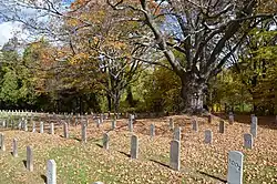 The Connecticut Valley Hospital Cemetery is a historic cemetery on Silvermine Road in Middletown, Connecticut. Founded in 1878, it served as the burying ground for patients of the Connecticut General Hospital for the Insane until 1957. Its design and layout are reflective of institutional cemetery practices of the period, with uniform numbered grave markers in a modestly landscaped setting. The cemetery was listed on the National Register of Historic Places in 1982.[1]