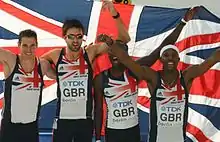 ![]() Conrad Williams (right) with the GB 4x400 m team at the World Championships in 2009 | |