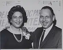 Motley was elected on February 4, 1964, to the New York State Senate (21st district), to fill the vacancy caused by the election of James Lopez Watson to the New York City Civil Court.[18] She was the first African American woman to sit in the State Senate. She took her seat in the 174th New York State Legislature, was re-elected in November 1964 to the 175th New York State Legislature, and resigned her seat when she was chosen as the first woman as Manhattan Borough President on February 23, 1965, after her predecessor was elected to a state judicial position.[19] In November 1965, she was elected to a full four-year term. J. Raymond Jones was influential in helping her reach these positions.[20]