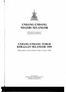 - ↑ "Constitution of the state of Selangor 1959". 12 August 2014. Retrieved 26 April 2018.