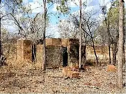 The main concentration of machinery and concrete foundations are located to the northwest of the site, about 40–60 metres (130–200 ft) southwest of the current Gulf Developmental Road. However, there are a number of shafts, most of which have filled with water, and one which is timbered with sawn hardwood, situated on the southern side of the former Gulf Developmental Road. The use of sawn timber to line the shaft is rare on the former Croydon goldfield; most timbered shafts in the area used locally cut sapling logs. Surviving sawn timber shaft linings are rare in Queensland.[1]