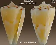 - 1 2 Conus kalafuti da Motta, 1987. Retrieved through: World Register of Marine Species on 27 March 2010.