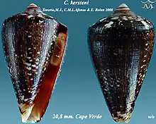 - 1 2 Conus kersteni Tenorio, Afonso, & Rolán, 2008. Retrieved through: World Register of Marine Species on 27 March 2010.