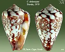 - 1 2 3 Conus delanoyae Trovão, 1979. Retrieved through: World Register of Marine Species on 27 March 2010.
