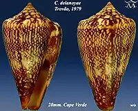 - ↑ "Africonus delanoyae". Gastropods.com. Retrieved 12 January 2019.