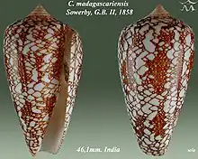 - 1 2 Conus madagascariensis G. B. Sowerby II, 1858. Retrieved through: World Register of Marine Species on 27 March 2010.