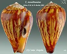 - 1 2 Conus tenuilineatus Rolán & Röckel, 2001. Retrieved through: World Register of Marine Species on 27 March 2010.
