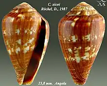 - 1 2 Conus xicoi Röckel, 1987. Retrieved through: World Register of Marine Species on 27 March 2010.