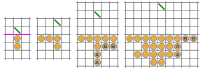 Arrangements of Conway's soldiers to reach rows 1, 2, 3 and 4. The soldiers marked "B" represent an alternative to those marked "A".