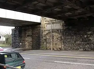 ![]() Blocked entrance to former railway station, Cooper Bridge Road. | |