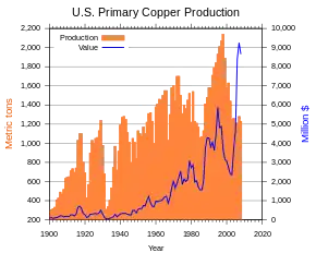 Arizona has been a major copper producer since the 19th century. In 2006, Arizona was the leading copper-producing state in the US, producing a record $5 billion worth of copper.[16]