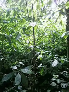 Kanono is found in wet and shaded forest areas where it can grow to 6 metres high. Its leaves often have a mottled appearance.