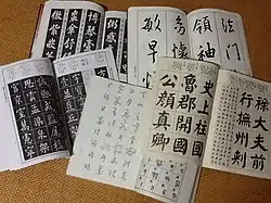 Today children in China who enter school would have a copybook for learning characters. Because they just learn writing for a short time, it is hard for children to write characters in their own style. Copybooks can help children practice different font of handwriting and build their own style. If people want to learn calligraphy, besides the Four Treasures of the Study, they also need to prepare copybooks which the type of font is what they want to learn. Because the choice of copybooks would decide the style people write in. There are also copybooks that are online with the option to enter your own characters and create your own copybook.[2]