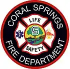 The Coral Springs Parkland Fire Department (CSPFD) provides fire protection and emergency medical services to the city of Coral Springs, Florida. With a total of 8 stations, the CSPFD is also has a contract to serve the city of Parkland located just north of Coral Springs.[2] Three of the CSPFD's 8 stations are located within the city of Parkland.