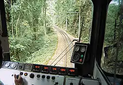 The railway was built using metre gauge and the Riggenbach rack system, and has a maximum incline of 30%.[4] It is one of the few remaining railways using three-phase electric power with two overhead wires, at 900 V 60 Hz.