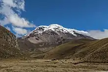 The Cordillera Occidental range is one of two main mountain ranges in the Andes in Ecuador, the other being the Cordillera Central. It spans the whole country from north to south. The highest peak of the Cordillera Occidental is Chimborazo (6,267 m).