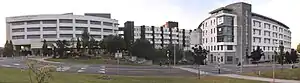 The hospital also receives patients by helicopter: currently helicopters land on a purpose-built helipad at the facilities of Bishopstown G.A.A. and Highfield R.F.C. near to the hospital.[14] In 2011 it was confirmed on 6 April 2011 that the hospital would receive a new helipad costing €1.5m[15] and, after a lengthy site selection process, a planning application for the helipad was submitted in November 2018.[16] In March 2023 it was announced that tenders for construction of the new helipad were to be issued, with construction to start in June 2023, targeting a March 2024 completion date. It is to be located on the northern side of the campus.[17]
