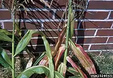 Corn stunt disease is a bacterial disease of corn and other grasses. Symptoms include stunted growth and leaves turning red. It is caused by the bacterium Spiroplasma kunkelii.[1]