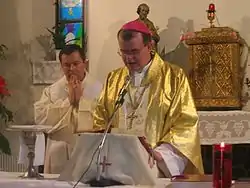 Cornel Damian (born May 8, 1960) is a Romanian cleric, auxiliary bishop of the Roman Catholic Archdiocese of Bucharest. Born in Jibou, he moved with his family to Drobeta-Turnu Severin, where he finished high school. His parents were Greek-Catholic, but as their church was banned under the communist regime, Damian was raised in the Roman Catholic tradition.[1][2] He attended the Roman Catholic Theological Institute of Iași and was ordained a priest in 1986 at Saint Joseph's Cathedral in Bucharest. He was assistant priest at the Cioplea Church and from 1987 to 1998 parish priest at another Bucharest parish. He began teaching moral theology in 1991 at a theological institute which opened that year. From 1998 to 2002 he studied canon law at the Pontifical Gregorian University in Rome. In 2002 he was assigned to a new parish and began teaching canon law. In 2003, having been chosen auxiliary bishop by Pope John Paul II, he was consecrated titular bishop of Iziriana at the Bucharest cathedral by Archbishop Ioan Robu.[2]