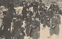 - ↑ The four companies of the Foreign Legion battalion were augmented by a further two companies[77] composed of ethnic Greek volunteers forming the 13th and 14th companies of the provisional regiment.[80]