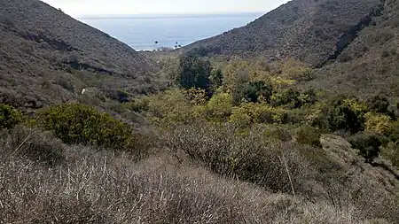 The Corral Canyon is a valley of the Santa Monica Mountains that slopes down to the striking and diverse terrain of the Malibu coast.[1]