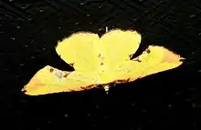 It is generally a yellow moth with brownish tips of the forewings. Two subspecies are recognized: