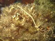 Corythoichthys ocellatus, the ocellated pipefish or orange-spotted pipefish, is a marine pipefish found in the western Pacific Ocean.[2] Belonging to the family Syngnathidae, it grows up to 10 cm long, and is found in the first 12 m of the warm tropical seas off the coast of Australia. Ovoviviparous, the male carries the eggs in a brood pouch found under the tail.[3]