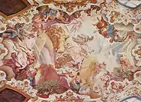 ![]() Cosmas Damian Asam in front of ceiling fresco inside Weltenburg Abbey | |