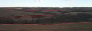 ![]() Well-exposed natural outcrop of the Cottonwood Limestone alongside the Konza Prairie Nature Trail | |