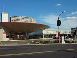 The Council Plaza housing development, built with financing and support from Teamsters Local 688 and its leader, Harold J. Gibbons, transformed the Grand Center area in the 1950s and 60s. The two apartment towers, the 16-story Council Tower West (now the Grand View Apartments) and the 27-story Council Tower East (now the Council Tower Senior Apartments) were two of the first developments built in the Mill Creek Valley.[3] This area became known as Council Plaza. The Council Tower Senior Apartments building is still one of the tallest residential structures in the metropolitan area; in 2011 this building, then "largely vacant", was sold and the new owner began an extensive renovation,[4] including renovation of the 260 foot high sculpture that covers the tower's east façade.[5]