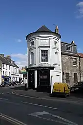 The first county hall in Kinross-shire was a modest structure in the High Street which was completed in around 1600. It was primarily used as a courthouse and was repaired to a design by the architect and local member of parliament, Robert Adam, in 1771.[2] The design involved a prominent bowed frontage facing south down the High Street.[3]