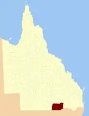- ↑ Queensland showing counties / compiled and published at the Survey Department, Brisbane, Brisbane : Survey Dept., 1900.