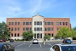 Covington Latin School was founded in 1923 as a boys' school by Bishop Francis Howard and modeled on the German Gymnasium. It opened in a private house with 15 students. In 1925 it moved to Mother of God School and in November 1926 to the Knights of Columbus hall, an 1877 building that had originally been a Methodist Episcopal and was renovated to house the school. The official dedication of that building took place in March 1927. In 1941 the school replaced it with a three-story purpose-built building on the same site, designed in Gothic style to harmonize with the cathedral. That year there were 170 students.[2][3]