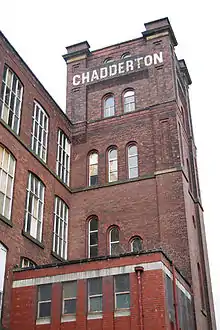 Several cotton spinning mills were built during the cotton boom of mid to late 1800s including Alder Root Mill (1860–1883), Chadderton Mill (1885 - still standing), Glenby (1885–1962) and Osborne (1853–1973). See List of mills in Chadderton. The Chadderton Mill is a grade II listed building. The mill ceased production in June 2000, being the last cotton mill in Chadderton to function as such.[13]