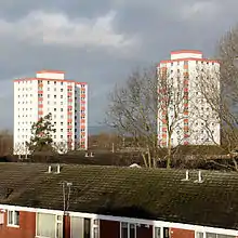 An ancient hamlet which grew into an industrial village, Cowhill is now a residential area and includes a large housing development, Crossley Estate, built as part of widespread redevelopment of the area in the 1960s and 1970s. 2014 saw the completion of major refurbishment of the estate including 87 new houses and a new community centre, The Crossley Centre.[1]