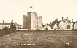 The barracks were built in a Fortress Gothic Revival style at Bullingdon Green using Charlbury stone[1] and completed in spring 1876.[2] Their creation took place as part of the Cardwell Reforms which encouraged the localisation of British military forces.[3] The barracks became the depot for the 52nd (Oxfordshire) Regiment of Foot and the 85th Regiment of Foot (Bucks Volunteers).[4] Following the Childers Reforms, the 43rd (Monmouthshire) Regiment of Foot (Light Infantry) and the 52nd (Oxfordshire) Regiment of Foot amalgamated to form the Oxfordshire Light Infantry with its depot at the barracks in 1881.[4]