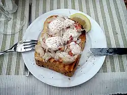 Crab meat from crab claws on toast